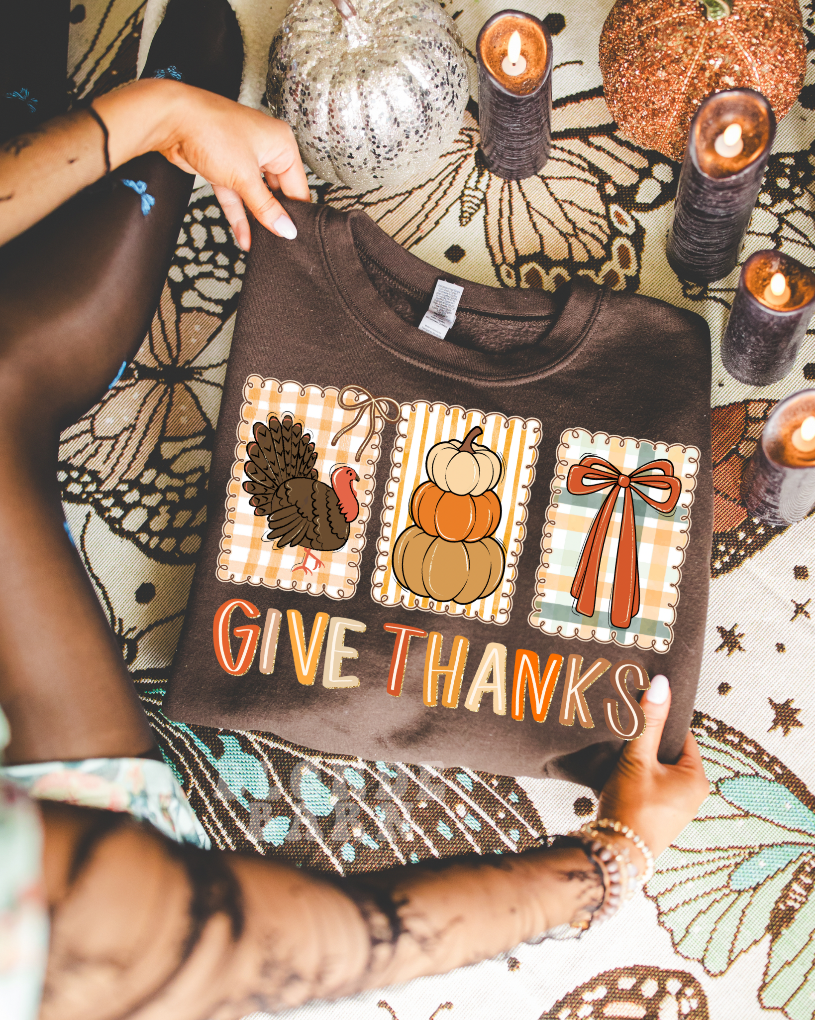 GIVE THANKS CHOCOLATE BROWN CREW